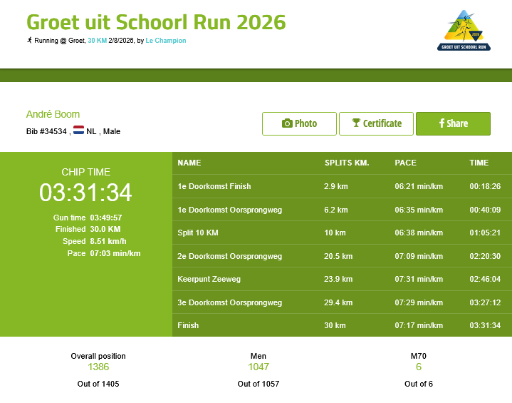 Ik was getipt door Bob Bock, die er vandaag ook weer bij was. Echt, als je daar zoals in mijn geval zegt dat je zo’n 250 marathons en/of ultra’s heb gelopen dan ben je nog maar een kleine jongen. Pas boven de 500 ga je een beetje meetellen… En als je aarzelend toegeeft een 70-plusser te zijn dan maakt dat ook nauwelijks indruk. Want 60- en 70-plussers zijn er rijkelijk vertegenwoordigd.