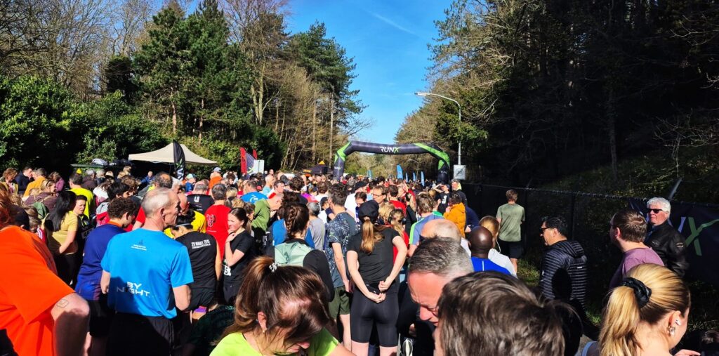 Het was weer een gezellige editie met een strakblauwe lucht, weinig wind en een aangename temperatuur. Net als vorig jaar stonden alleen de tijden tot ca. 1 uur 20 minuten op uitslagen.nl, zodat ik het voorlopig moet hebben van mijn eigen meting. Hoe dat komt weet ik niet, maar vorig jaar verscheen de rest van de tijden uiteindelijk toch na een dag of twee op de website. Bij terugkomst in de Tetterode sporthal wachtte mij nog een verrassing: het was er aardedonker omdat iemand nadat alles opgeruimd was de lichten had uitgedaan. Met het lampje van mijn mobiel kon ik na enig speuren mijn tas onder een bank terugvinden.