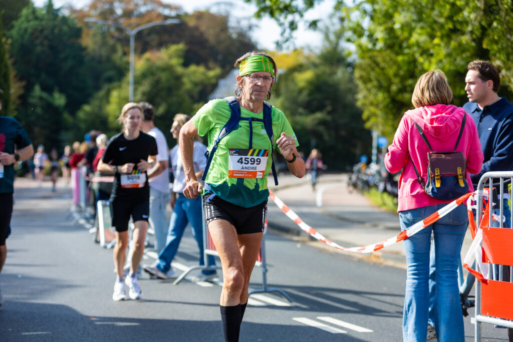 Vandaag heb ik mijn 70e halve marathon gelopen tijdens de hernieuwde editie van de Halve van Haarlem. Hernieuwd in die zin dat de start niet op de Grote Markt was maar op de Nieuwe Gracht en dat de route nu niet rechtsom maar linksom liep. Dus heen over de Zeeweg en terug over het Visscherspad. Voor mijn gevoel was dat zwaarder dan andersom. De reden voor deze verandering was dat de organisatie het deelnemersaantal heeft willen doen groeien naar ruim 5000. De Grote Markt zou veel te klein zijn voor een massastart. Op de Nieuwe Gracht kon er met startvakken gewerkt worden, wat op de Grote Markt niet zou kunnen. En ik moet zeggen dat de start inderdaad goed georganiseerd en vlekkeloos verliep. Van het grote aantal extra lopers was niet veel te merken omdat de meesten al onderweg waren toen ik zelf van start ging om kwart over twaalf.