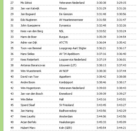 Startnummer: 245 Bruto tijd: 3:38:46 Categorie: M50: Plaats 41 van 127 (32%). Aantal deelnemers marathon H379 D48.