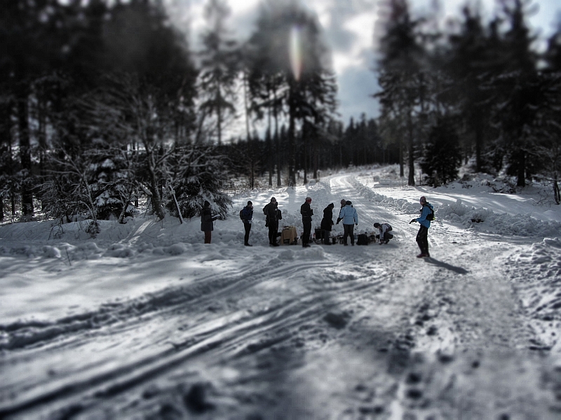 Midden in de Harz, een eenzame plek temidden van uitgestrekte dennenbossen. Het is hartje winter, een paar graden onder nul en er ligt zo'n 25 centimeter zachte sneeuw. Rond een paar houten sleetjes staat een groep mensen. Dikke kleding, mutsen, handschoenen. Op een gasbrandertje staat een ketel met water te pruttelen. Wat doen die mensen daar? Waarom zijn ze zo uitgelaten?