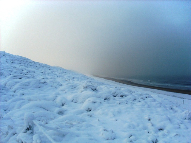 Qua lopen stond de afgelopen week in het teken van ploeteren door 10 á 15 cm dikke, verse sneeuw. Nog nooit heb ik zoveel kilometers door de sneeuw afgelegd. Ja, het begint zelfs gewoon te worden. Het accent lag op twee barre tochten van 24 respectievelijk 20 kilometer door het duinlandschap. Hoewel ik daar inmiddels vrijwel elk paadje en konijnenspoor ken, ben ik er nu toch een paar keer verdwaald. Geen wonder, want de paden en de routepaaltjes zijn vrijwel niet te zien in de witte, toendra-achtige uitgestrektheid. Het gaat ook allemaal een stuk zwaarder: om met een gangetje van 8 á 9 km per uur vooruit te komen moet er behoorlijk gezwoegd worden. Vrijdag ben ik al om kwart over acht 's ochtends gestart voor de 24 km. Min zes graden en niemand tegengekomen, op twee langlaufers na bij Parnassia. Een bijzondere ervaring, vooral toen er een omnevelde zon boven de bossen opkwam. Met vier (!) laagjes kleding had ik het eerder warm dan koud. Zaterdag de 20 km, waarbij het door een krachtige NO-wind veel kouder aanvoelde. De wind loeide door de dennenbossen en joeg de sneeuw in dichte witte gordijnen van de boomtoppen. Dikke klodders sneeuw vielen met plofgeluiden voor en achter me op het pad. Een ree vluchtte tussen de stammen weg. Links en rechts klopgeluiden van de spechten.