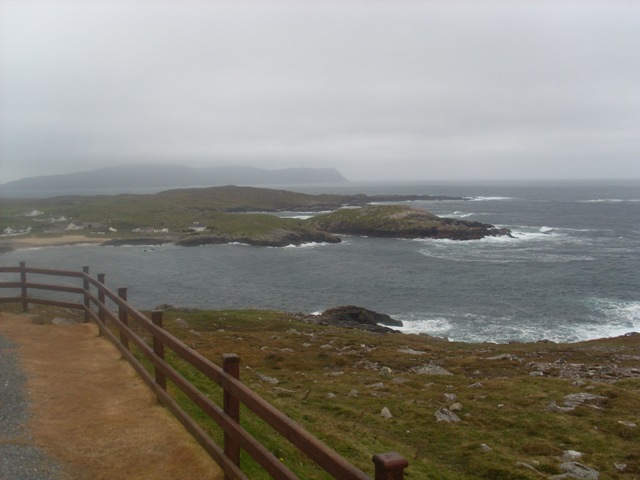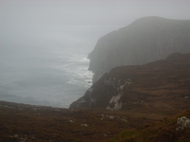 Ik heb iets met Ierland. Het landschap en de sfeer laten een diepe indruk na. Door het lopen wordt deze nog versterkt. Lopend op zo'n eenzaam parcours ben je kwetsbaar en eerlijk jegens het land. De meest natuurlijke manier van voortbewegen waarbij je alles om je heen lijfelijk ondergaat. De afstanden, de hellingen, de wind, de mist en de regen. Voor mij is het pure mystiek. Nu, een paar dagen later, onderga ik die werking nog steeds en zou ik zo weer terugwillen. De herinnering zit veel dieper in me dan bijvoorbeeld de herinnering aan een toeristisch uitstapje. Toen ik de ochtend van de volgende dag met een drietal mensen aan het ontbijt zat die ook de hele afstand hadden gelopen constateerde ik bij hen hetzelfde 'respect' voor wat zij hadden mogen ondergaan. Omdat ik nog een paar uur over had ben ik met een omweg langs de kust richting Donegal airport gereden. Via een smal zijweggetje van de N56 bereikte ik Horn Head, de kaap aan de overzijde van de baai Sheep Haven. Hoe het kan weet ik niet, maar er stond daar een loeiende storm en tussen de vochtige mistflarden vanaf de Atlantische oceaan door kon ik af en toe in de diepte de golven tegen de rotsen zien beuken. Zeggen ze niet dat Ierland een overgebleven deel van Atlantis is?
