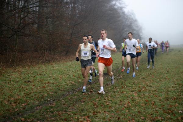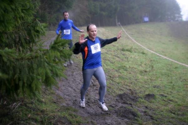 Na twee maanden min of meer op de bank gezeten te hebben met een achillespeesblessure stond ik voor het eerst in 2006 weer eens aan de startstreep van een wedstrijd. De Phanos boscross in het Amsterdamse bos had deze 'eer'. Hoewel deze cross dit jaar ruim een maand later viel dan vorig jaar was hij net als in 2005 weer mijn openingswedstrijd van het jaar. Het parcours, dat zich over en rond de Heuvel (16 meter) in het Amsterdamse bos slingert was anderhalve kilometer langer dan in 2005. Gelet op de tijd van vorig jaar denk ik echter dat het parcours toen ook al langer was dan de 9 km die op de Phanos site stond. Het was een behoorlijke gok hoe mijn hiel het zou houden. Een cross is nou niet het meest hiel-vriendelijke testparcours... Toch wilde ik deze wedstrijd graag gelopen hebben, omdat ik dan, met de Castricum cross in maart er bij, nog in aanmerking zou kunnen komen voor de eindklassering van de Kennemer Cross cup. Iets wat ik als gevolg van genoemde blessure eigenlijk al uit mijn hoofd had gezet. En ik dacht dat het wel mee zou vallen, omdat het al dagenlang droog geweest was en het parcours, nu de vorst uit de lucht is, wel lekker zacht (veel gras) zou zijn. Nou..., nee dus. Toen ik vanochtend opstond was het grijs en regende het! Een lichte motregen weliswaar, maar de plassen die er al lagen wezen er op dat het al geruime tijd aangehouden moest hebben. Dat beloofde wat, want deze cross is bij nat weer ontzettend glad door de klei tussen het gras en op de paden. En ik heb geen schoenen met spikes. Inderdaad was het goed oppassen in de bochten, vooral waar je aan het eind van de aflopende stukken door mollen omgeploegd gras een haakse bocht moest maken om weer op de spaarse stukjes wandelpad te komen die het parcours kende. Het laatste stuk van de klim naar de Heuvel was echter helemaal spectaculair. Het leek wel of ze dat gedeelte met opzet nog even in de boenwas hadden gezet. Ik zag sommigen, die al een paar keer onderuit waren gegaan, ten einde raad dan maar de laatste paar meter op handen en voeten overbruggen. Voor mij was heelhuis finishen belangrijker dan een goede tijd. Ik had absoluut geen zin in een opnieuw oplevende blessure. Toch viel het, met een gemiddelde van 12,72, gelet op het parcours en mijn slechte vorm, alleszins mee.