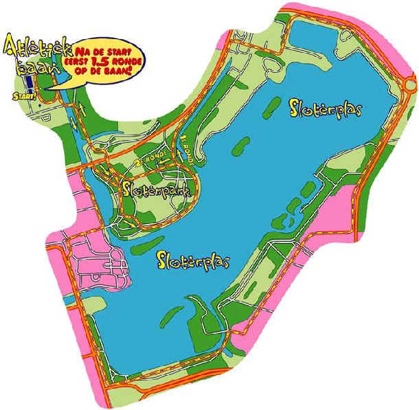 De 71e Sloterplasloop leverde een mooie 41-minuter op. Het traditionele dipje rond km7 bleef binnen de perken en naar het eind toe kon ik zelfs geleidelijk versnellen. Meerdere atleten liepen vrij scherpe tijden en zoals altijd in zulke situaties stak ook nu weer het gerucht op dat de afstand te kort zou zijn geweest. Ik kan het niet helemaal uitsluiten, want het parcours was door onderhoudswerkzaamheden in het Sloterpark hier en daar enigszins aangepast en bovendien had ook ik het gevoel dat de kilometers aan het eind steeds korter werden; vooral tussen de 8 en 9 km leverde dit een verrassend snelle ‘kilometer’ tijd op van onder de 4 minuten terwijl ik tussen de 5 en de 8 nog zo rond de 4:16 zat. Op veel plaatsen kon men bovendien over het gras lopend bij de bochten flink wat meters afsnoepen (heb ik overigens niet gedaan hoor, want dan zou het zéker geen 10 km meer zijn…). Neemt niet weg dat het prettig was om een keer lekker dicht bij huis te lopen en een welkome graadmeter voor de tempohardheid, zo tussen twee marathons in. Ik had het gevoel dat er in zijn algemeenheid wat minder deelnemers waren dan vorig jaar.