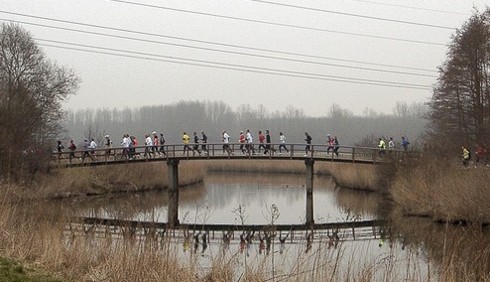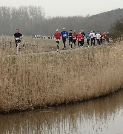 Vandaag hebben Jan en Jaap me naar een nieuw PR op de 30km gehaasd (of was het ‘gesleurd’?). Eigenlijk had ik me voor de 30 ingeschreven om mezelf na een paar maanden met blessureproblemen te testen op een langere afstand. Bij de start zag ik Allaaddin, Henk, Tom Jaburg, Jan, Jaap en Gilles. Al meteen namen de laatste drie wat voorsprong, maar ze deden het rustig aan in verband met de komende marathons (Barcelona al volgende week geloof ik?). Ik sloot me aan bij een groepje dat een voor mij prettig tempo liep (later bleken het 20km lopers te zijn) en halverwege de tweede ronde kreeg ik Jan (herkenbaar aan zijn flitsende nieuwe Kombij tenue, dat merkwaardig genoeg als twee druppels water op dat van mij leek), Jaap en Gilles in het vizier. De 20km-ers liet ik gaan en ik sloot met bij de Kombij-ers aan. Als snel werd me de vraag gesteld wat eigenlijk mijn PR was, dus niets vermoedend antwoordde ik 2:22 . Toen moest ik er aan geloven, want Jan en Jaap namen me vervolgens op sleeptouw. Gilles liep in eigen tempo vlak achter ons.